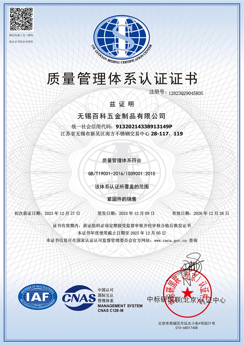 作为保山螺栓、螺丝、螺母、定制生产厂家。百科五金制品有限公司成立于2015年,总部位于中国制造业高地——江苏无锡,扼守沪宁杭甬四大城市交通节点,依托无锡立体化物流网络